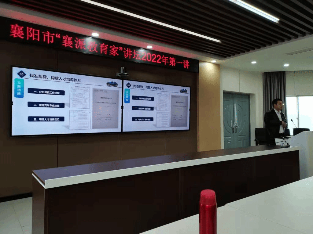 2022年1月11日,汽车工程学院汽检专业主任刘翔作为第九期“襄派教育家”优秀学员参加了“襄派教育家讲坛”2022年第一讲的活动,襄阳市教育局副局长伍倜出席了本次活动。襄阳市区及各县市中职学校领导现场参与,所有中职学校全体教师在线上进行了直播观摩。