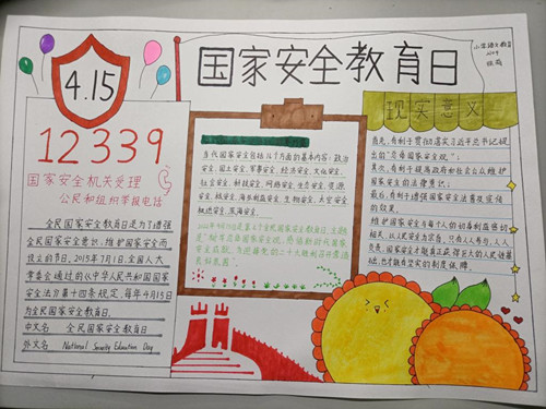 4月15日是第七个国家安全教育日。为贯彻落实总体国家安全观,切实增强学生国家安全法治意识,推动国家安全教育深入人心,师范学院通过召开主题班会、开展手抄报比赛、官微知识推送、LED屏宣传、发放知识宣传手册、制作知识宣传展板等形式,开展国家安全教育日宣传活动。