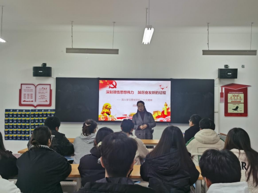 为深入学习宣传贯彻党的二十大精神,2月23日下午,信息技术学院邀请学校宣讲团成员马克思主义学院闵德美教授作党的二十大精神宣讲。全体党员和学生入党积极分子参加此次会议。报告会由党总支书记汤才虎主持。