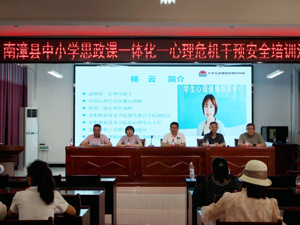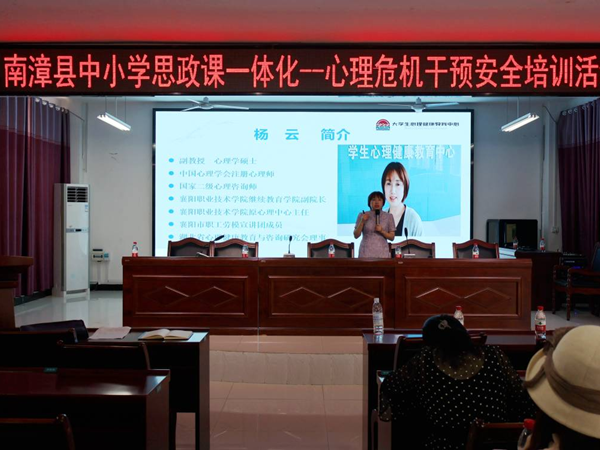 为进一步贯彻落实教育部及襄阳市关于推进大中小学思政一体化建设的指导精神,6月12日上午,学校学工处处长但耀卿、继续教育学院副院长杨云、马克思主义学院党总支副书记魏赤文赴南漳县开展“大中小思政课一体化——心理危机干预安全培训”活动。活动由南漳县教育局基础教育科科长杨光新主持。南漳县各中小学分管安全工作领导、思政课教师、班主任、专兼职心理健康教育教师共计160余人参加。