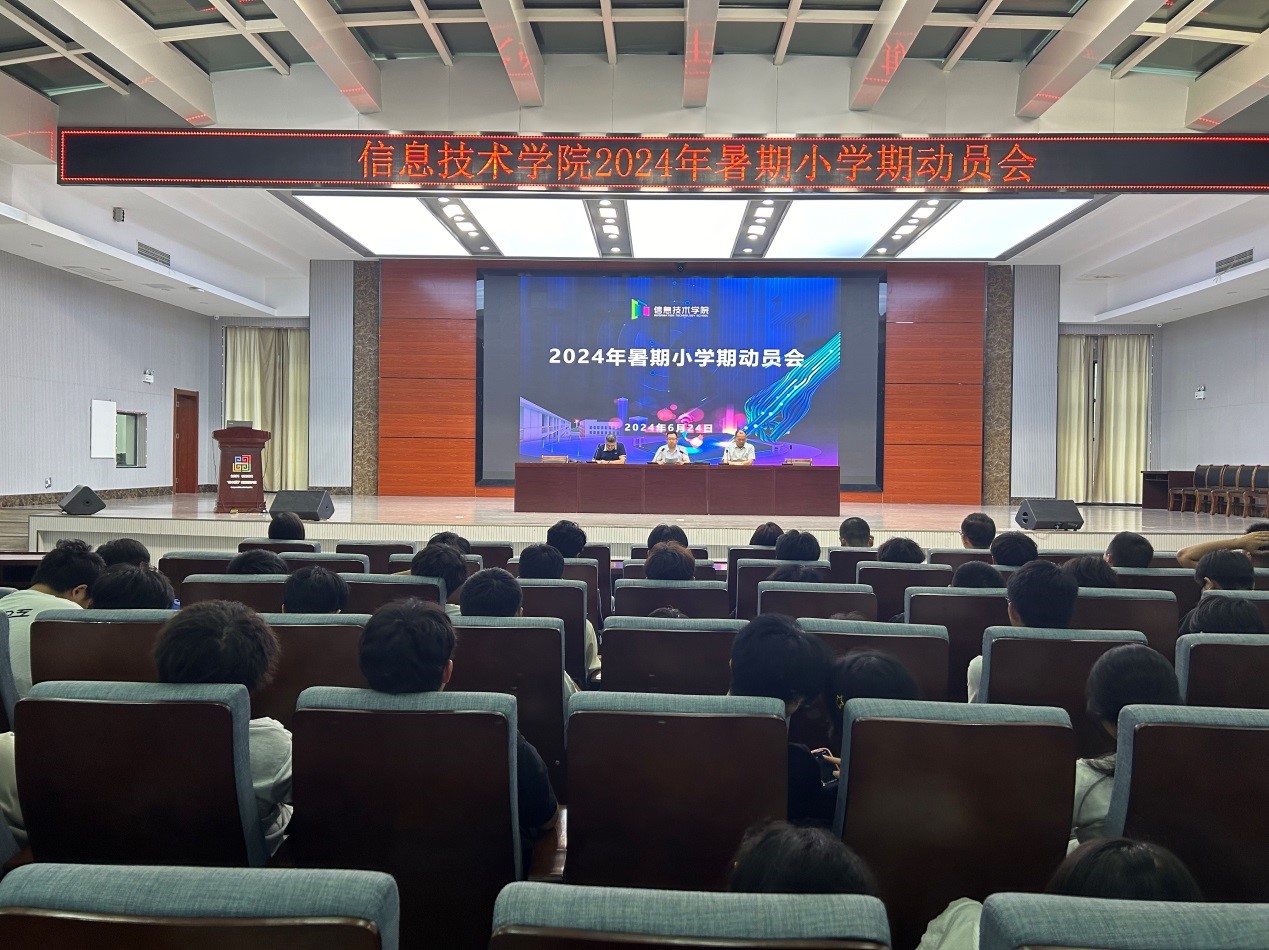 6月24日晚,信息技术学院在智造中心A栋报告厅召开2024年暑期小学期动员会。信息技术学院全体干部、研究室主任、2022级全体学生和班主任参会。会议由副院长曾鸿主持。