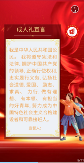 奏唱国歌、观看视频、教师寄语、宣读誓言…… 活动方式虽然改变,但仪式程序并未简化。当国歌奏响,网络另一端的青年们庄严站立,向眼前或心中的国旗致敬;紧接着,全体学生观看成人礼主题视频。同学们从孩童到少年,再到青年的成长画面徐徐展开。其中有温馨的家庭生活,也有在中专部学习生活的场景,更有在抗“疫”中勇挑重任的身姿。视频最后,中专部党总支书记陈建波、主任武雪慧寄语青年,经过疫情的考验,要懂感恩、会自立、知敬畏、敢承担,要更加坚毅、更加自信、更加强大,用奋斗书写青春。殷切的话语唤起了“现场”每一位学生的共鸣与感动。视频结束,各班级学生和家长代表与大家分享了成长故事。班主任为青年学子送上十八岁生日祝福。最后,全体学生进行成人礼宣誓,立下“努力成为中国特色社会主义合格建设者和可靠接班人”的铮铮誓言。