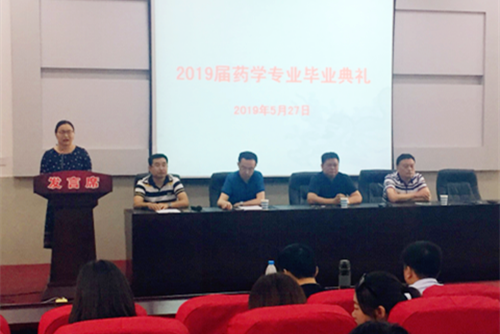 转眼又到毕业季。5月27日下午3点,医学院2019届药学专业毕业典礼在阶梯教室隆重举行。院党总支书记佘传江,党总支副书记何娟,副院长王朝晖、张静宇、杨雷,2016级全体师生参加活动。