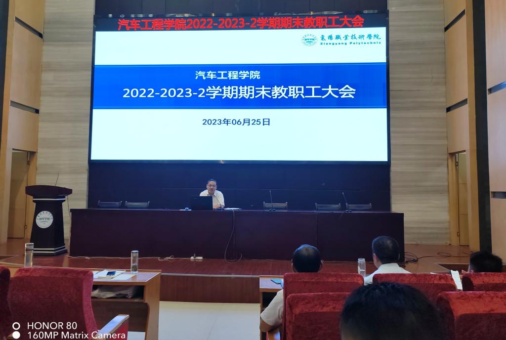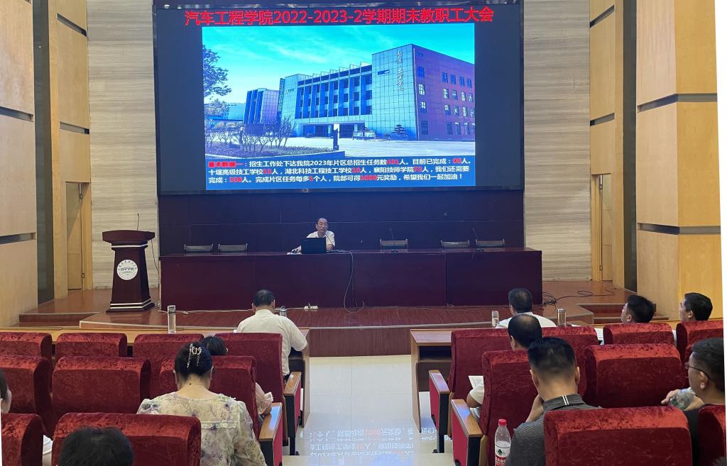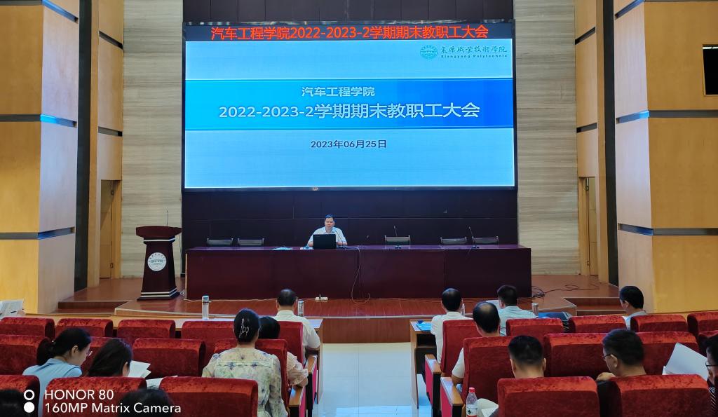 6月25日下午,汽车工程学院在图书馆一号学术报告厅召开2022—2023—2学期期末教职工大会。会议全面回顾了半年来院部的各项工作,安排部署下一阶段工作。全体教职工参加会议,党总支书记王群主持会议。