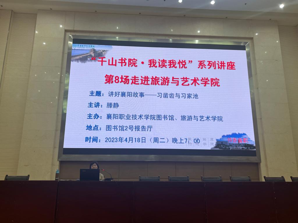 讲座由公共课部教师滕静主讲。滕老师从“中国郊野园林第一家”习家池,东晋著名史学家、文学家习凿齿的故事中,解读“凿齿”其名的由来,讲述习凿齿的生平功绩以及他与东晋权臣桓温、著名佛教高僧释道安、著名大儒孙绰、前秦王苻坚之间的关系与轶事典故,诠释习凿齿的《汉晋春秋》《襄阳耆旧记》等著作和历史贡献,引导大家追溯襄阳悠久的历史文化。