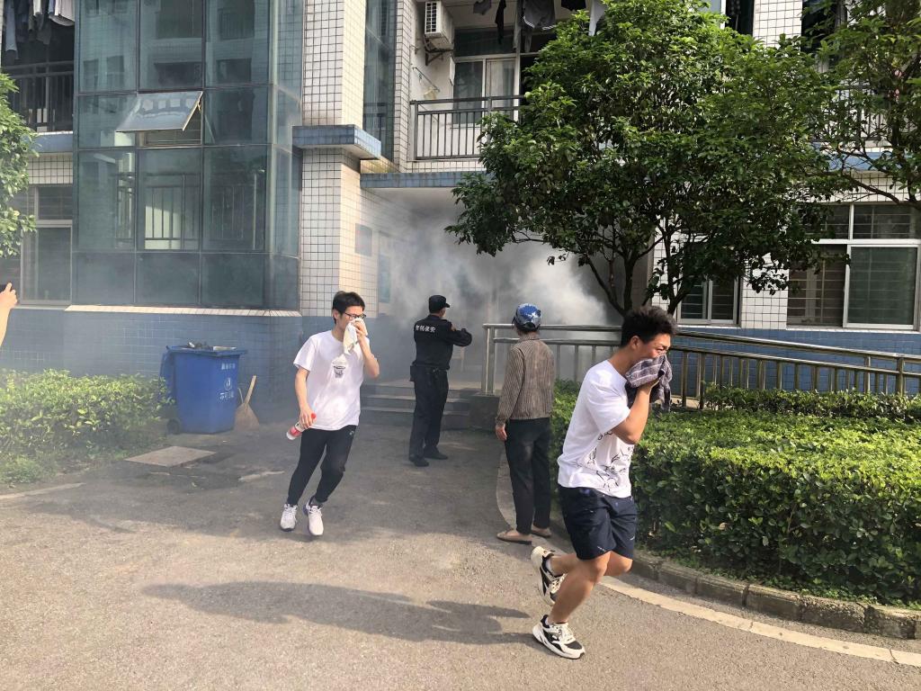 演练开始前,保卫处副处长杨先正介绍了消防知识要点。他要求同学们保持良好的习惯,禁止将大功率电器、火种等易燃物带入学校,从根源上消除火灾隐患。接下来,在消防安全警报的哨声中,各寝室长组织大家用湿毛巾捂好口鼻,弯腰沿着逃生路线有序撤离到指定的安全地点。整个过程井然有序,效果良好。