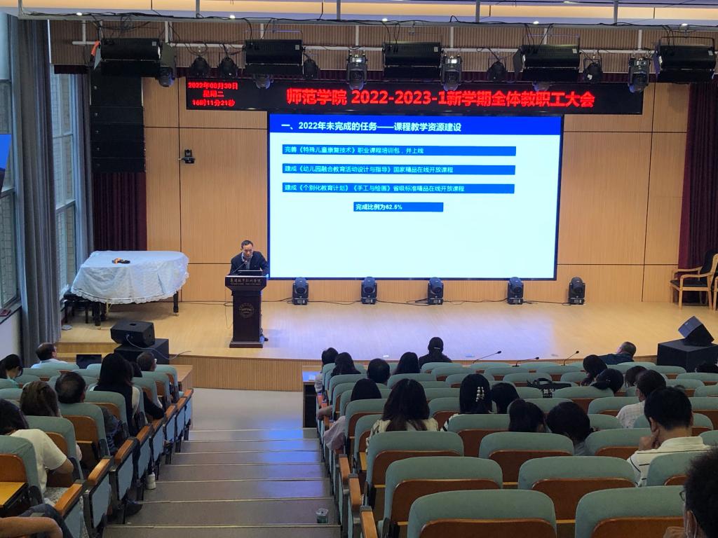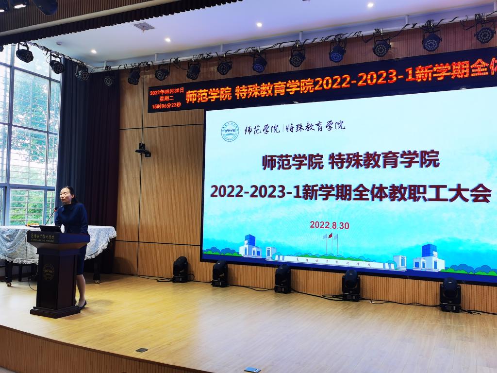 8月30日下午,师范学院在博学楼演播厅组织召开了2022—2023—1新学期开学全体教职工大会。会议由党总支书记张丹主持。