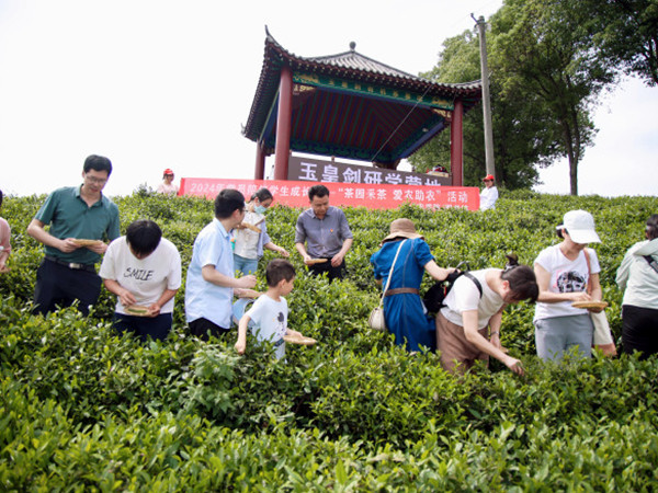 5月18日,农学院、图书馆党员教师与陪伴成长的学生共赴谷城玉皇剑,开展“茶园采茶,爱农助农”活动。