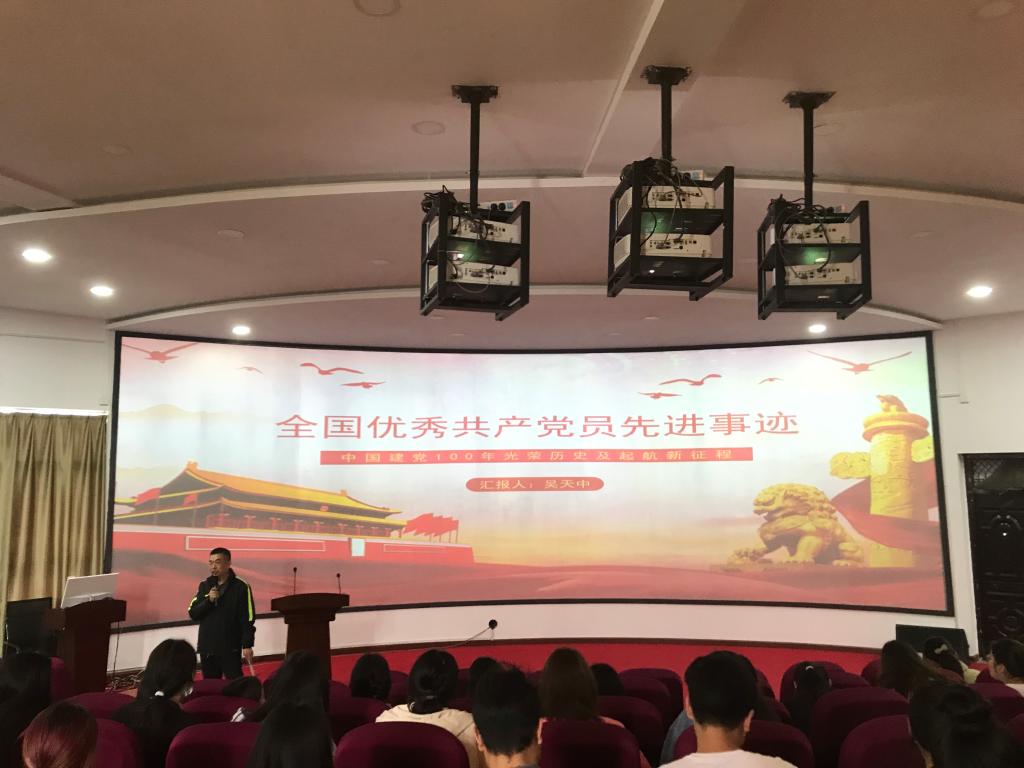4月21日中午12点30分,旅游与艺术学院于明志楼导游报告厅举办“青马班”暨入党积极分子培训班。党总支副书记吴天中作题为《全国优秀共产党员先进事迹》讲座。