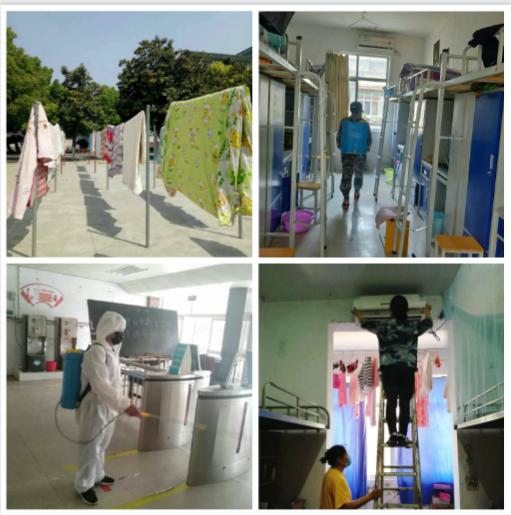 校区物业管理中心及时建立完善公寓社区防疫工作管理组织架构,对宿管员及公共楼宇值班员进行了培训。前期组织宿管员对学生衣物和被子进行晾晒,除了坚持做好寝室消杀、开窗通风等工作,近期还组织宿管阿姨对每间寝室的空调过滤网进行清洗,确保开学住宿的安全卫生。