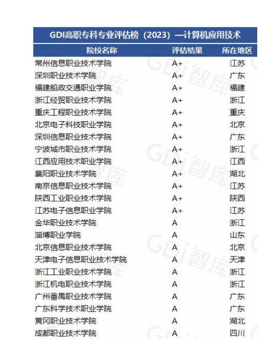 近日,信息技术学院计算机应用技术专业在最新公布的GDI高职专科专业评估榜(2023)中名列全国第十名,被评为A+专业。