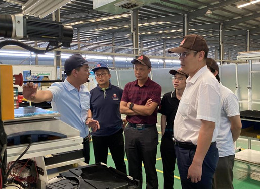 在襄阳聚山汽车部件有限公司,程洪涛等听取了总经理彭小波对公司基本情况的介绍,之后,来到生产现场调研。双方围绕公司产品、生产工艺等交换了意见。下一步,汽车工程学院将与该公司开展深入合作。