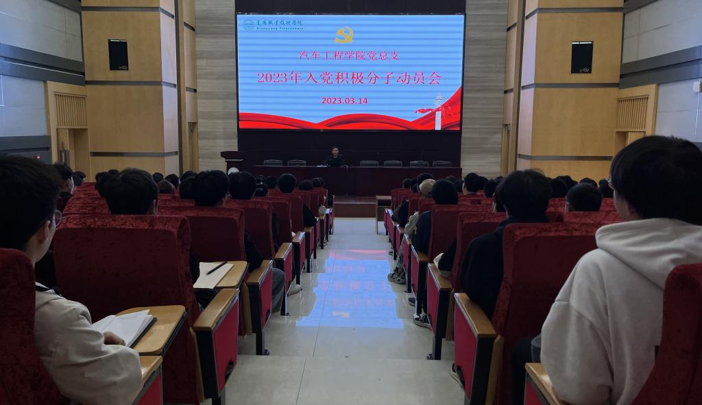3月14日晚,汽车工程学院党总支在图书馆一号报告厅为参加2023年业余党校培训班的159名入党积极分子召开开班动员会。党总支副书记龚文华、组织委员胡升耀、团总支负责人孙兆轩参加会议。