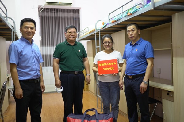 8月中旬,姚玲同学家中突然起火。天干物燥,火势发展迅猛,姚玲家的房子及家当全部被烧毁。这场大火使本已困难的姚家雪上加霜,生活顿时陷入窘境。学校得知此事后,专程来到学生宿舍看望,并送上3000元爱心基金。