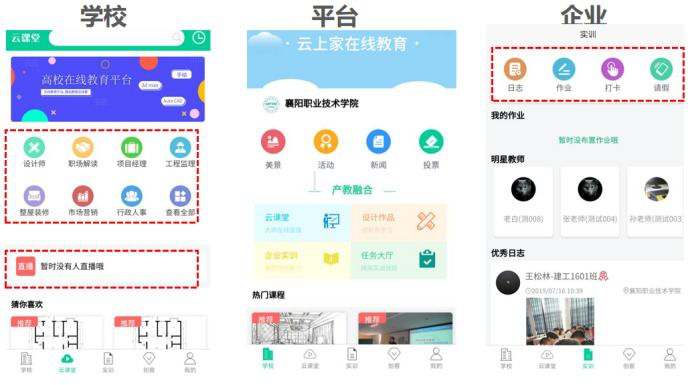 建筑工程学院依托智慧职教平台、中国大学慕课、超星尔雅平台及精品在线开放课程等,安排相关在线课程供学生学习,特别是很好利用了学院已建的“国家级建筑室内设计专业教学资源库”平台和开发的“云上家现代学徒制管理平台”,通过线上教学把优质的教学资源呈现给学生。