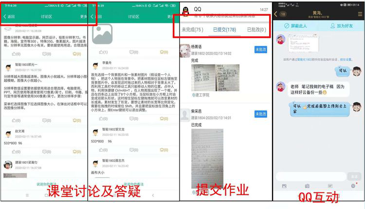 老师们利用云上家平台组织学习、课堂讨论、布置作业、批改作业。