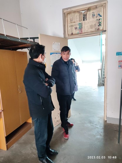 2月3日上午,商学院党总支书记王建宏、院长汪博兴带领全体行政人员开展2023年春季开学安全卫生大检查。