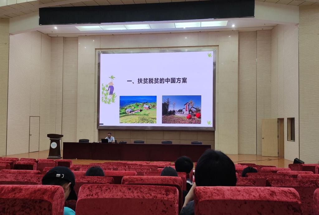 王金锋老师从“扶贫脱贫的中国方案”“不获全胜决不收兵”“大力弘扬脱贫攻坚精神”三个板块,讲述了我国扶贫开发的历史进程,回顾了脱贫攻坚取得的巨大成就,并引用全国脱贫攻坚模范们的英雄事迹,启发同学们领悟伟大的脱贫攻坚精神。