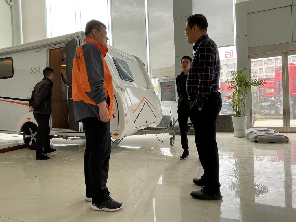 在湖北东润集团总部行政后勤管理中心总监詹重宇和东润学院院长谢远波的陪同下,程洪涛一行实地参观了集团下属的湖北东润阿科米汽车有限公司的房车展示及房车生产改造现场。