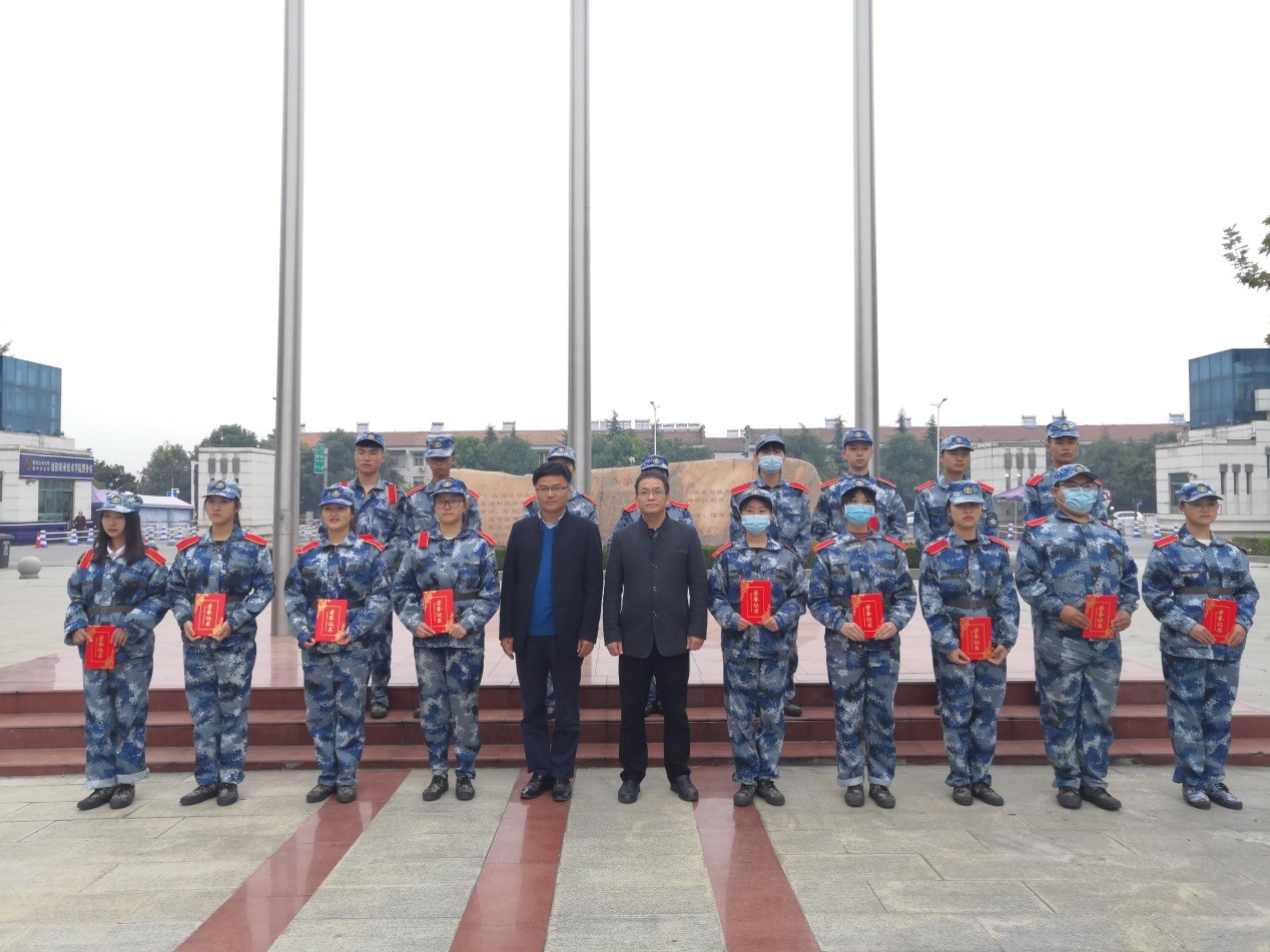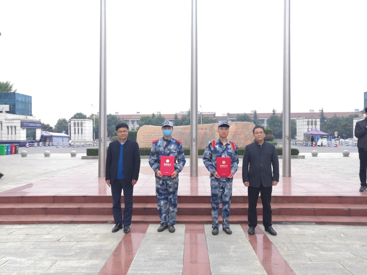 表演结束后,学生科科长梁光源宣读了《关于表彰2020级新生军训先进集体及先进个人的决定》。方基志、汪博兴为获奖集体和个人颁发荣誉证书。