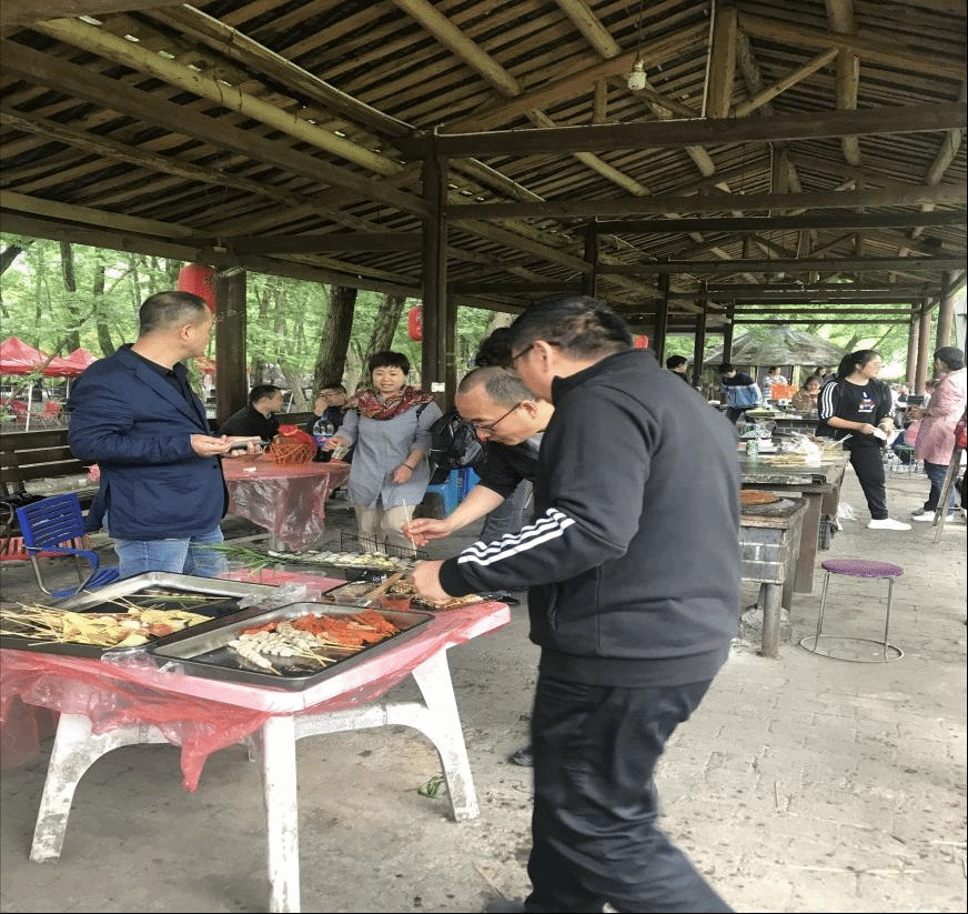 大家沿着小路徐徐前进,先后参观了民俗园、老家蜂场,体验农耕民俗文化;午餐为自助烧烤,一份份食材端出来,大家一起动手,生火、串签、翻烤,现场欢声笑语,其乐融融。