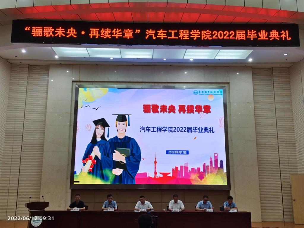 6月12日上午,汽车工程学院在图书馆二号学术报告厅举办了以“骊歌未央·再续华章”为主题的2022届毕业典礼。学院全体干部及2022届全体班主任老师出席了典礼。本次典礼由党总支书记李先国主持。