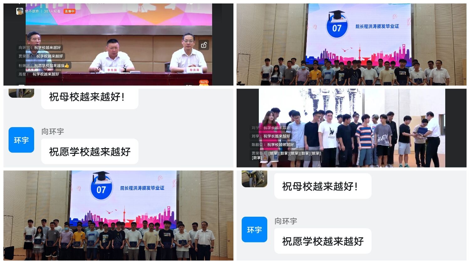 在激情高昂的院歌声中,毕业典礼圆满结束。意犹未尽的毕业生们纷纷留言,祝愿学校越来越好,表达他们对母校的热爱和祝福。