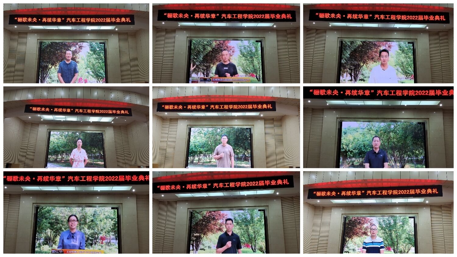受疫情影响,本次毕业典礼采用现场和线上直播方式进行。除在校的机械1902班同学在现场参加外,其余毕业生均通过钉钉直播参与。典礼开始前播放了2022届毕业生短片,其中有各班在校照片、毕业生对母校祝福、以及领导和班主任老师对毕业生的寄语等。