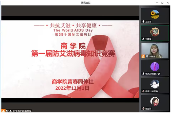 青春同伴社的同学们通过线上腾讯会议组织了艾滋病毒知识宣传竞赛活动。刘晓斌倡导全体同学和志愿者们,提高认识,积极参与,并祝本次竞赛顺利开展。
