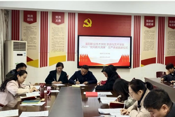为扎实推进院部党务建设,确保党建引领中心工作,达成党建育人实效,11月14日下午,旅游与艺术学院召开全体党员大会,党总支书记王壮通报了该院清廉建设载体标准,强调要求全体党员坚持清醒自律,知敬畏、存戒惧、守底线;践行言行雅正,行为世范;涵养道德情操,树立清简家风,全体党员庄严承诺并签订了《旅游与艺术学院全体党员党风廉政建设承诺书》。