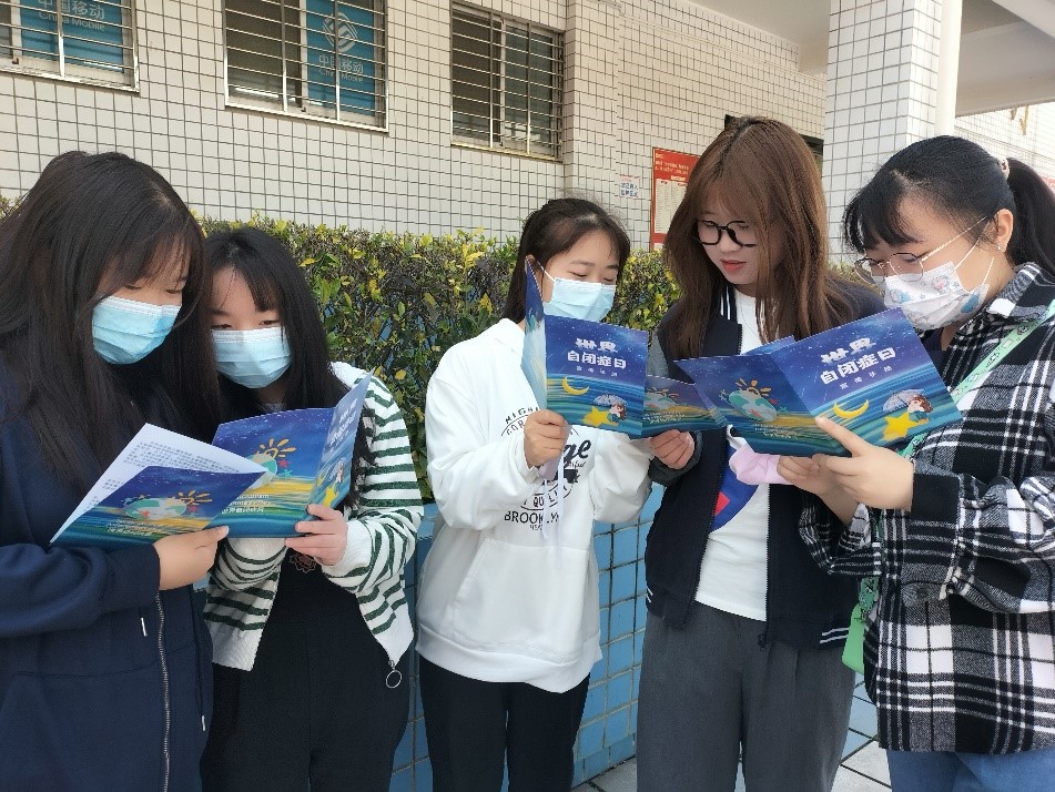 宣传教育,普及孤独症相关知识。4月2日,特殊教育专业学生在学校知恩堂门前小广场开展“自闭症日”宣传教育活动,来自1+青年志愿者协会的志愿者们现场发放宣传手册,向大学生介绍自闭症相关知识。在“你说我猜”、现场抢答等游戏活动环节,大学生们踊跃参加,同时表演了舞台剧、舞蹈等节目,向大学生们介绍自闭症儿童的特点。