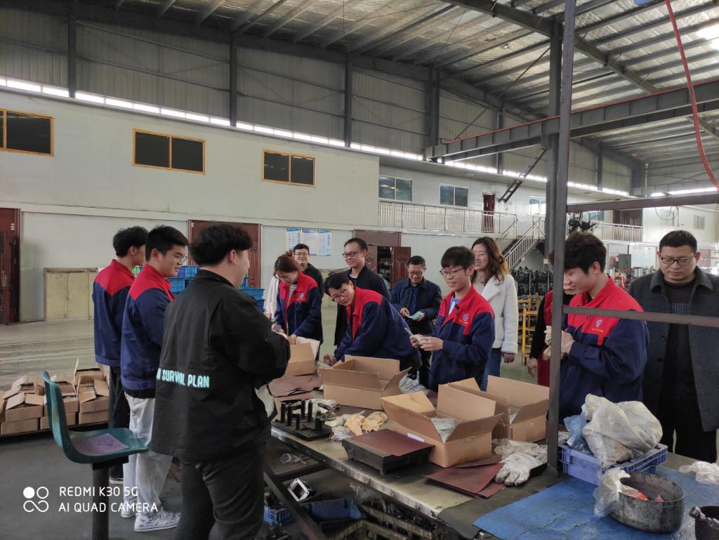 3月24日下午,汽车工程学院副院长向炜、就业办主任孙小芳、校企合作办潘喜利赴老河口,看望在该市轮岗实习的29名2019级机械专本连读学生。
