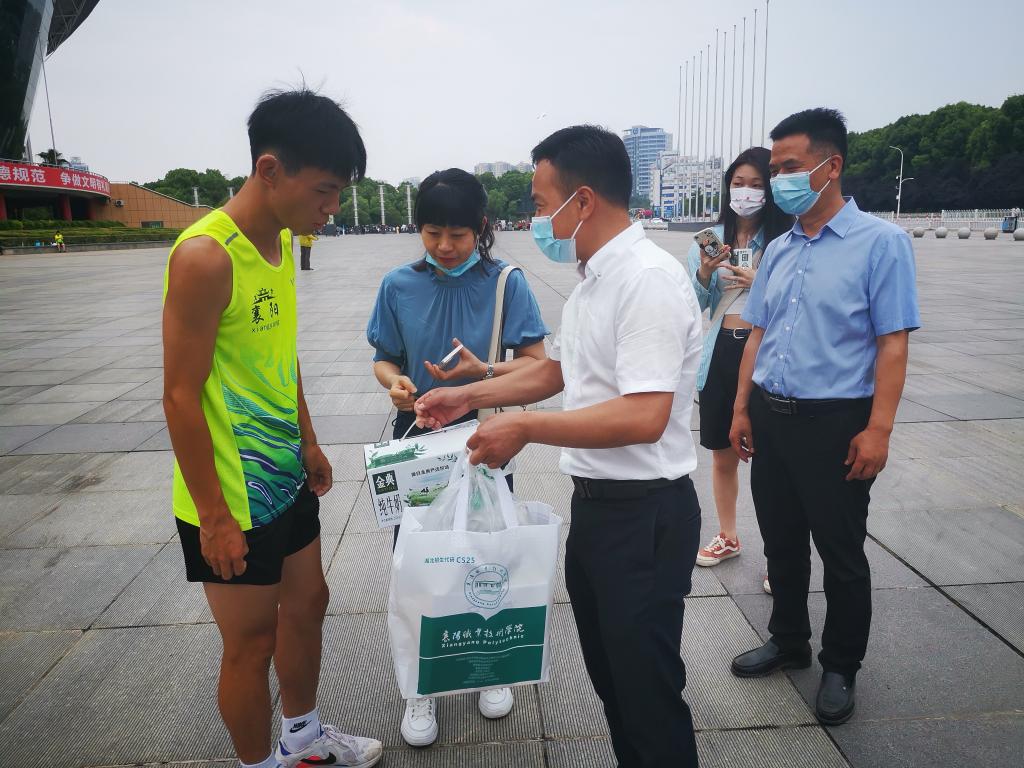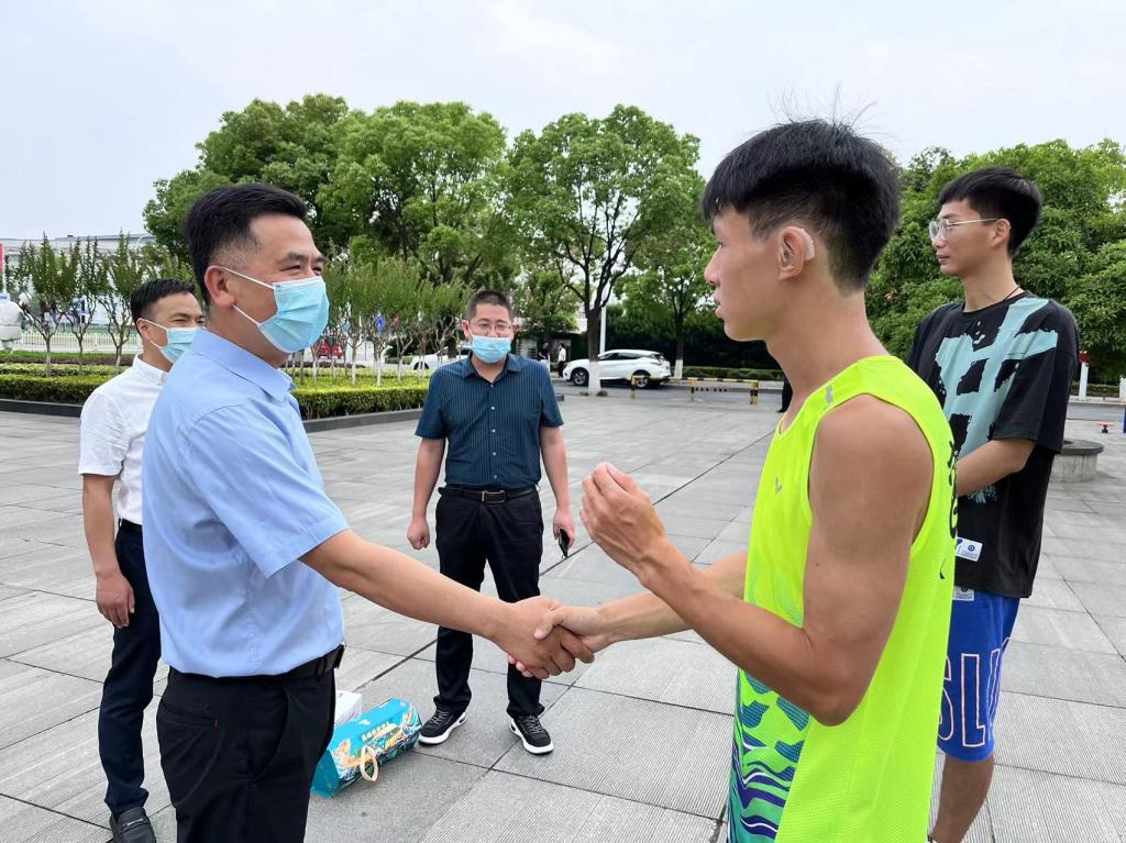 5月31日上午,端午节到来之际,学工处处长但耀卿,农学院学工副院长陈杰军、辅导员郭金海、班主任朱晓俊前往诸葛亮广场,走访湖北省第十一届残运会备赛运动员吴鑫海,为他送去同学们亲手包的粽子。