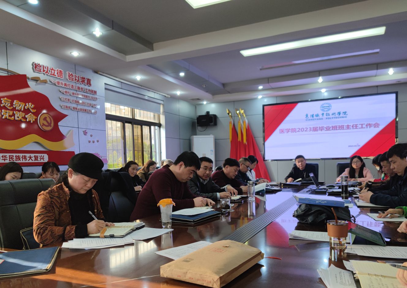近日,医学院在仁德楼三楼会议室召开2023届毕业班班主任工作会,会议由学工科科长栗财主持,医学院各相关科室部门负责人和全体毕业班班主任参加本次会议。