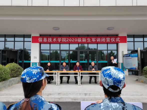 秋风送爽,硕果飘香。11月5日上午,信息技术学院2020级新生军训汇报表演暨闭营仪式在智造工业中心A栋广场隆重举行。信息技术学院党总支书记汤才虎,副院长曾鸿、张坤,共建专业合作企业负责人何静以及武警部队教官出席,并观看了本次受训的580余名新生带来的汇报表演。闭营仪式由副院长沈友明主持。