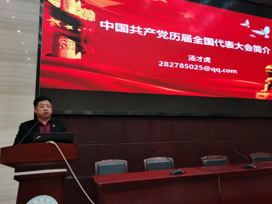开班仪式后,汤才虎讲了题为《中国共产党历届全国代表大会简介》的第一课。他从五四爱国运动爆发开始,介绍了马克思主义在中国传播、党的早期组织、中国共产党正式创立以及党的第一次全国代表大会至党的十九大等重要史实。