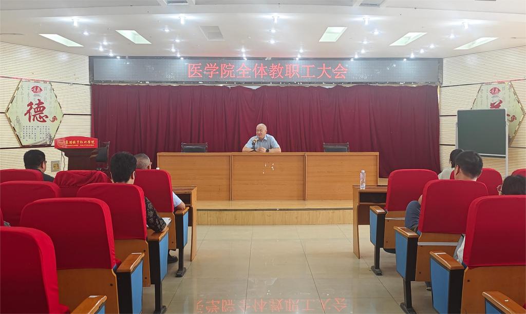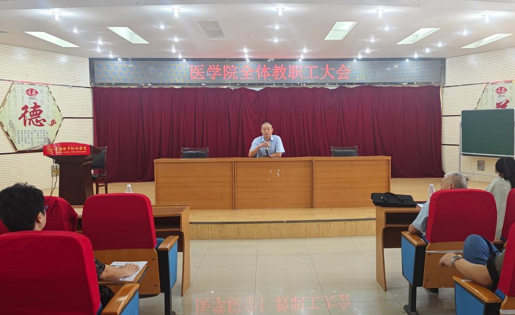 8月29日上午,医学院在仁济楼五楼学术报告厅召开全体职工大会。医学院党总支书记温茂兴、院长张家忠参加会议。