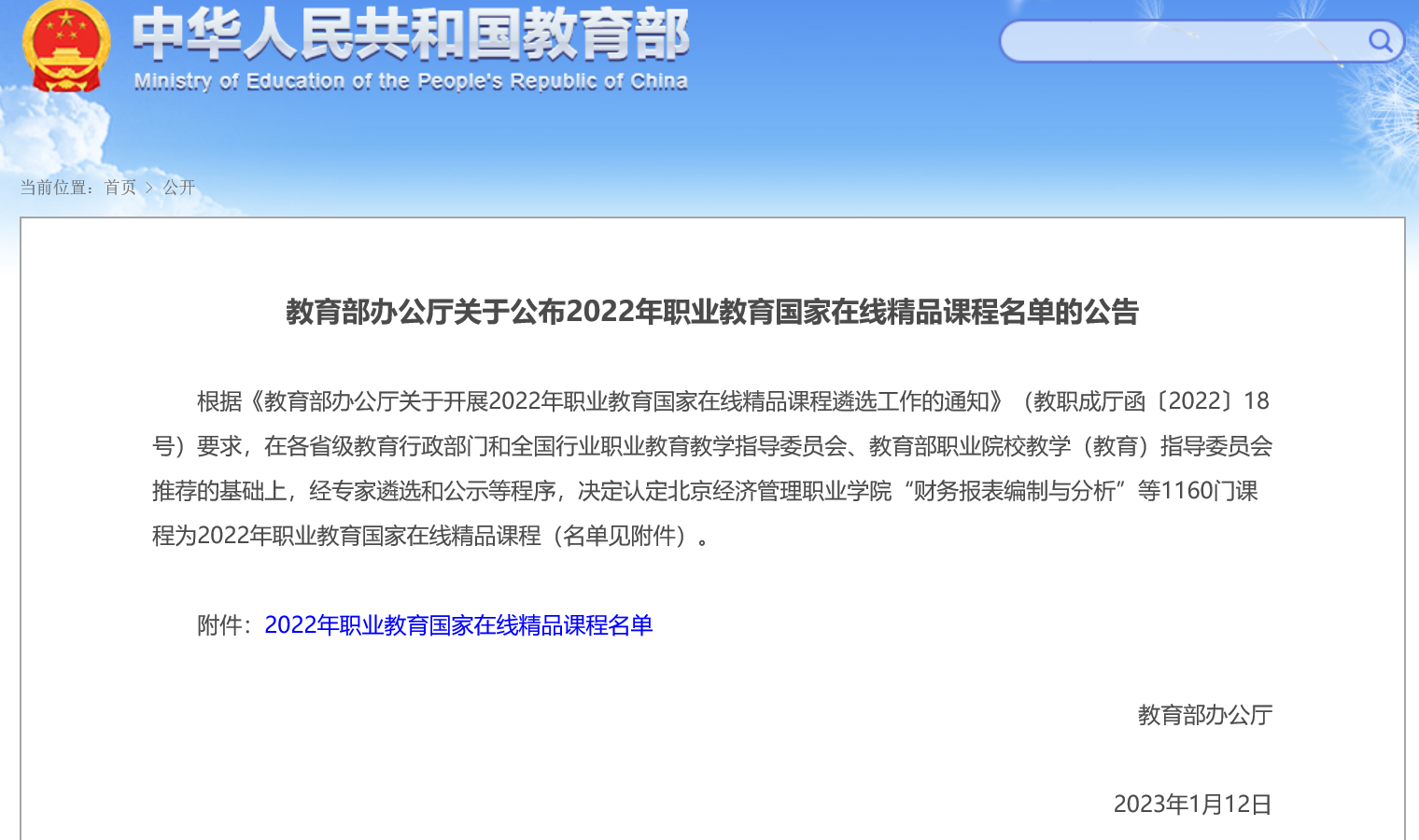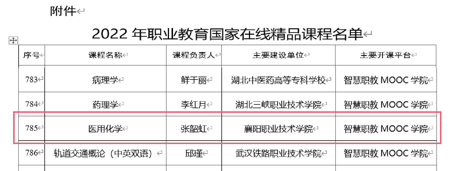 1月12日,教育部办公厅公布了2022年职业教育国家在线精品课程的名单,共认定1160门课程为2022年职业教育国家在线精品课程,我校共有三门课程入选,医学院张韶虹教授负责的《医用化学》课程成功获评职业教育国家在线精品课程。