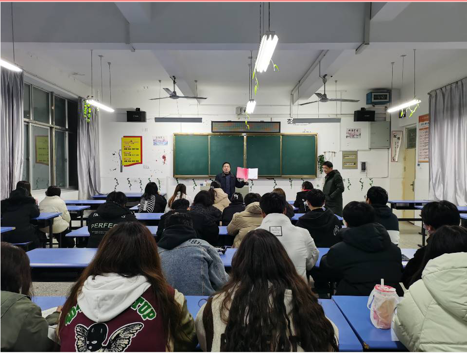 2月12日晚7点,旅游与艺术学院党总支书记王壮到党员陪伴学生成长定点联系班级服装设计2201班,与同学们亲切交流,同开班会。