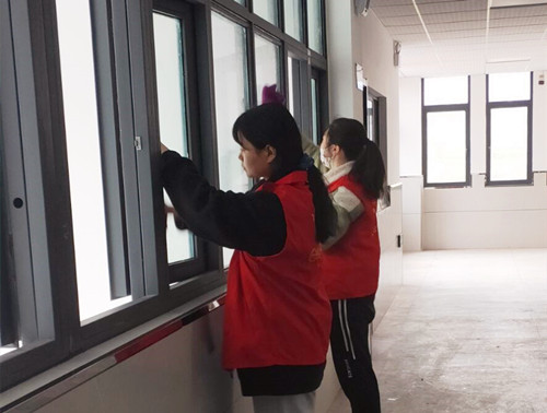 3月5日中午,团总支成员们身穿红马甲,分组在校园内清理打扫教学楼走廊,清理寝室楼附近垃圾。志愿者们认真负责,干劲十足,用实际行动让校园变得更加整洁美观。