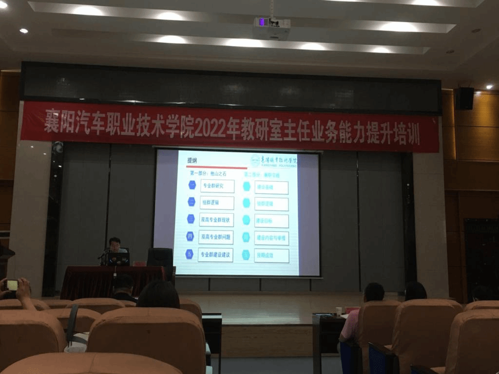 5月28日,襄阳汽车职业技术学院2022年教研室主任业务能力提升培训班在该校1号楼学术报告厅顺利开班。汽车工程学院教师张国豪受邀作《专业群建设的思考——以车辆制造与服务专业群建设为例》专题报告。