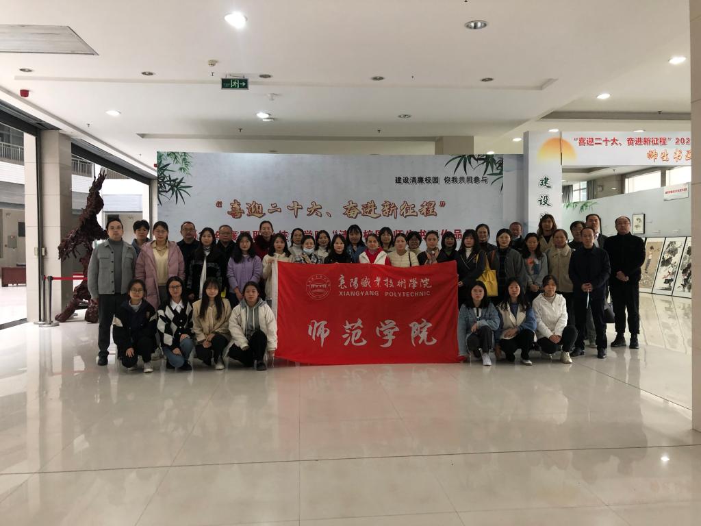 10月9日下午,师范学院组织全体教师党员,部分学生入党积极分子、党员陪伴成长的同学们一同参观了由学校举办的“喜迎二十大奋进新征程”主题清廉书画作品展。