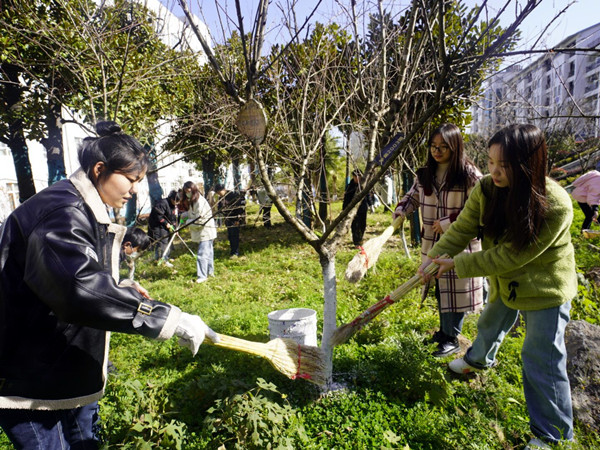 在大雪节气来临之际,12月6日,师范学院学工党支部组织支部党员教师、学生会主要学生干部齐聚博爱楼后桃李林。师生一起刷树除草,现场一片欢声笑语。