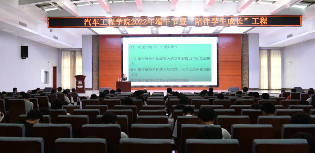 6月2日下午,端午节来临之际,汽车工程学院党总支、机关第一党总支第二党支部、马克思主义学院联合在智造工业中心开展了“襄职千山飘粽香,师生相聚抒情怀”端午节“陪伴学生成长”活动。学校工会副主席李红、女工委主任刘华琼,基建规划处处长张光义,汽车工程学院党总支书记李先国、院长程洪涛,以及全体党员一同陪伴学生学习端午传统民俗、传承中国传统文化。