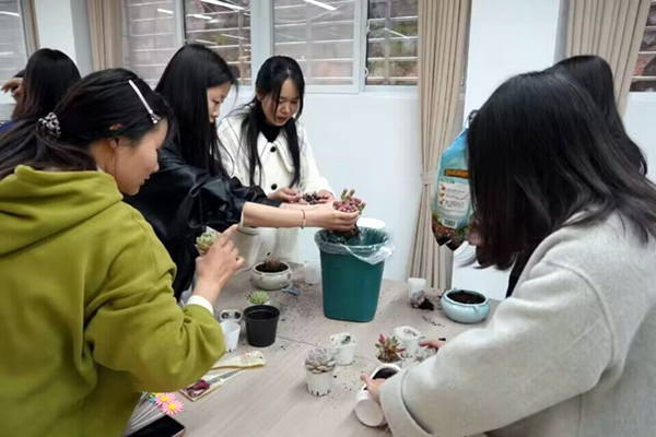 3月12日下午,学工处在一站式学生社区“五育融心”工作室开展第一期育人育心活动——“装扮春天 动手布置一站式学生社区”。20名学生通过今日校园APP报名参加活动。