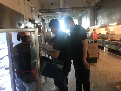 后勤副总经理余涛向巡视组介绍了我校食堂食品卫生安全、食品安全制度建设、食品卫生监管等方面的情况。巡查组查阅了相关资料,并随机抽查了雅园一食堂和静园食堂。实地巡查过程中,巡查组查看了食堂明厨亮灶、制止餐饮浪费、燃气安全等情况,重点巡查了学校餐饮规范经营、从业人员规范管理、食品原料安全存储、原材料采购加工、餐厨垃圾规范处置等工作,并与用餐师生进行了交流。