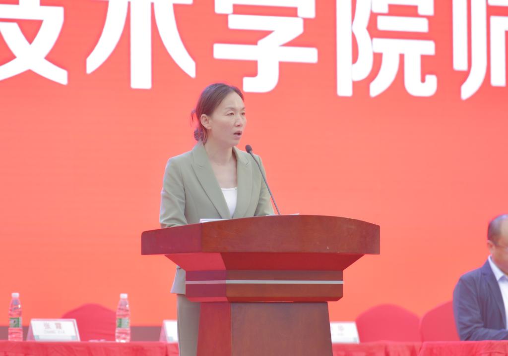 师范学院党总支书记张丹在致辞中对毕业生们表示祝贺。她带领同学们回顾了大学三年时光,并列举了每位毕业班班主任的口头禅,那一句句“你们是最棒的!我们是模范班级。”“没事多看书多学习,把资格证都拿到,要一把拿下。”“天气变化大,孩子们要注意保暖。”熟悉的温暖话语让现场的同学们激动流泪。最后,张丹希望全体毕业生要常怀感恩心,坚定从教志,走好追梦路。
