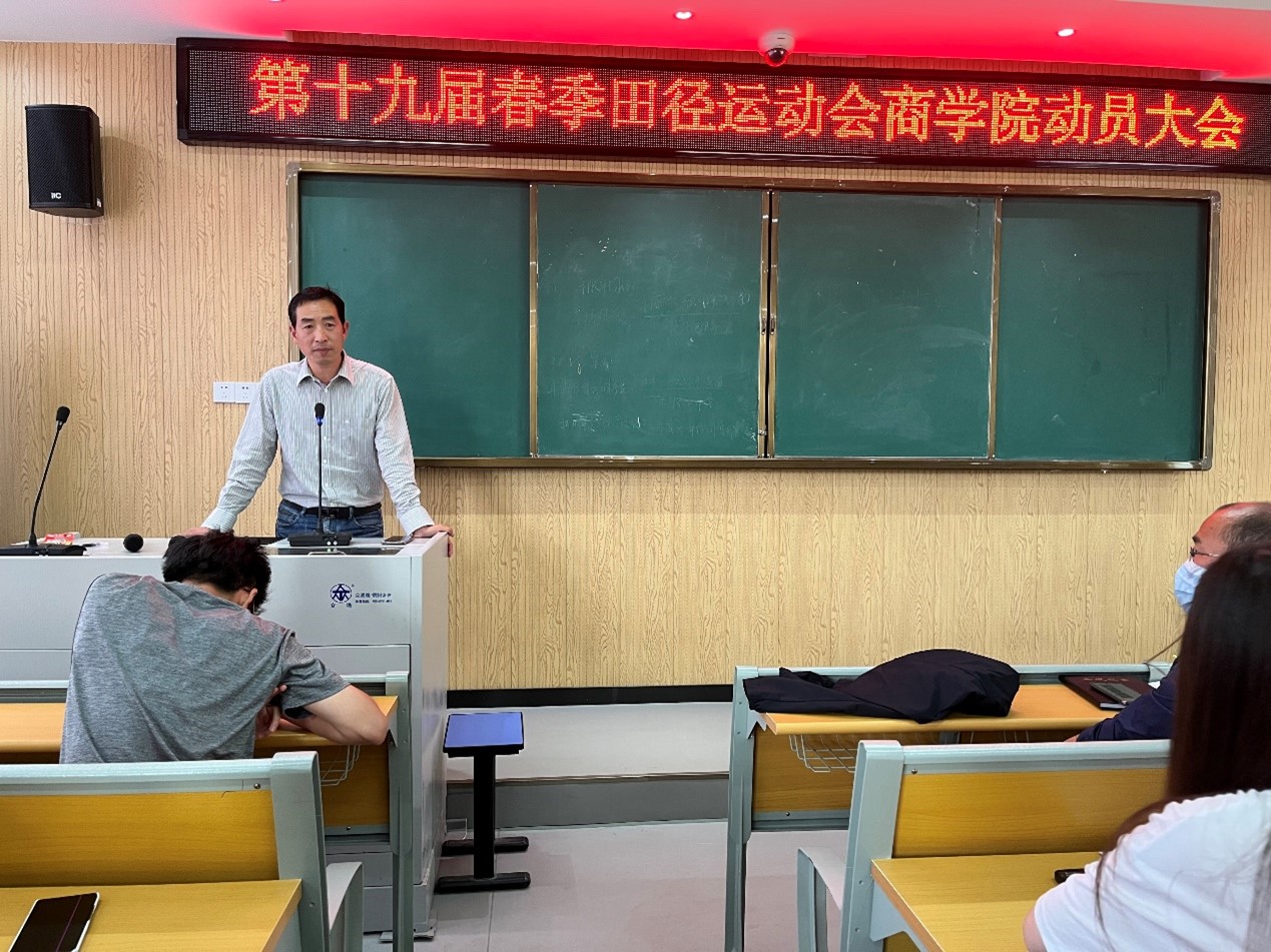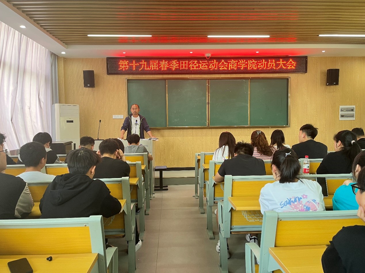 5月3日下午,商学院在笃学楼N101举办第十九届春季田径运动会动员大会。商学院副院长葛峰、学工科全体教师以及商学院95名运动员参加会议。动员会由商学院学工科科长梁光源主持。