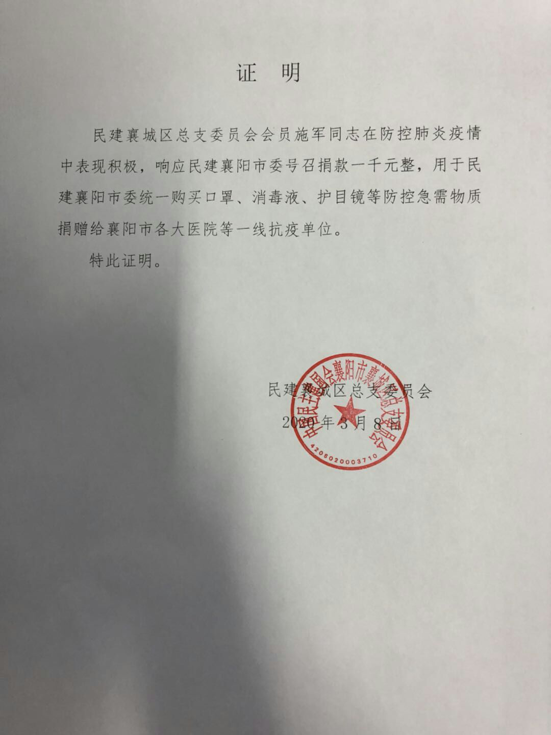 此前,已有数位党员向慈善总会等公益组织自发捐款五千余元。商务支部党员贾丽老师,多方联系企业为附属医院捐助防护服100件、护目镜120个、医用手套4000个。党员们用点滴爱心集聚起支援疫情防控的强大正能量,以实际行动践行初心使命。