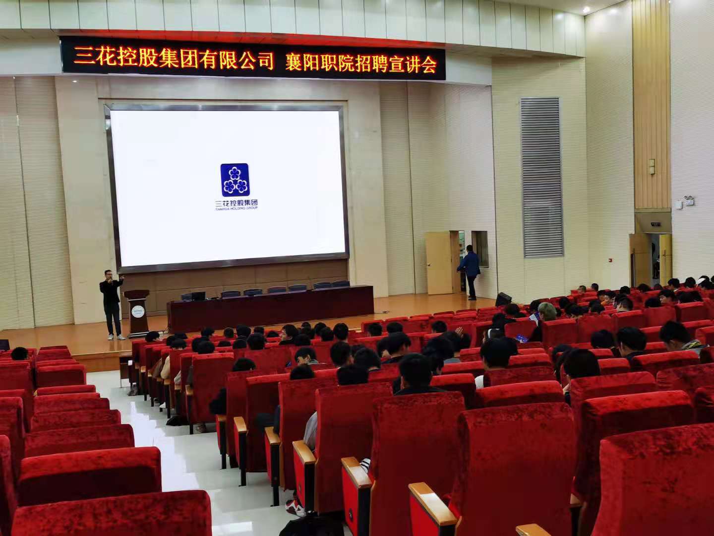 周天宇给全体同学播放了公司宣传片,介绍了公司情况,就同学们感兴趣和有疑问的问题进行了答疑,并组建了招聘微信群,希望同学们加入三花企业大家庭,实现个人职业发展目标。